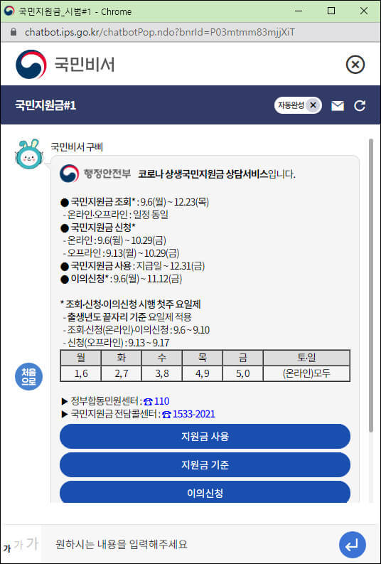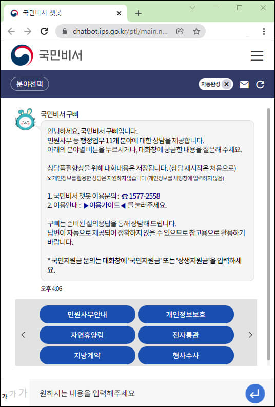 포털 사이트에서 국민비서를 검색하면 해당 홈페이지가 나옵니다. 바로가기 링크 주소는 다음과 같습니다.