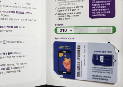 심카드 배송도 빨리 왔습니다. 내부에 전화번호와 심카드가 들어 있습니다. 신규로 신청했기 때문에 이미 개통이 완료되어 있습니다. 설명대로 여러 번 켜고 끄고를 반복해서 문자가 잘 들어오는 것을 확인했습니다.