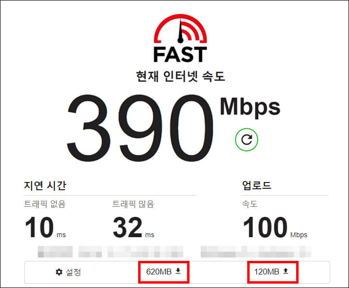 넷플릭스에서 운영하고 있는 인터넷 속도측정 사이트 패스트(Fast.com/ko)도 많은 분들이 사용하는 것으로 알고 있습니다. 넷플릭스 서버를 사용하고 있어서 안정성이 있고, 회원 가입할 필요 없이 해당 사이트에 접속하면 바로 인터넷 속도측정을 할 수 있습니다.