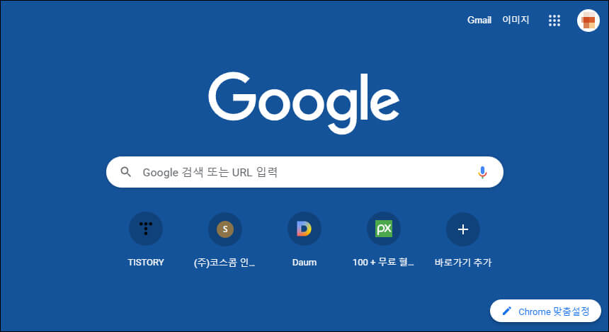 이제 크롬 다운로드 및 설치가 완료되었습니다. 크롬은 개인 사용자에 따라서 맞춤 설정이 가능합니다. 구글 아이디에 따라 브라우저의 색이나 자주 쓰는 기능이 다르게 세팅할 수 있습니다.