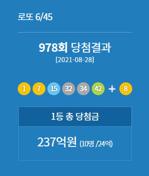 978회(2021년 8월 28일)~ 983회(2021년 10월 2일)까지 당첨된 결과입니다. 날짜가 지나서 확인을 못하신 분들은 참고하시면 되겠습니다.