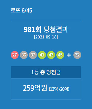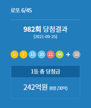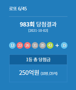 978회(2021년 8월 28일)~ 983회(2021년 10월 2일)까지 당첨된 결과입니다. 날짜가 지나서 확인을 못하신 분들은 참고하시면 되겠습니다.