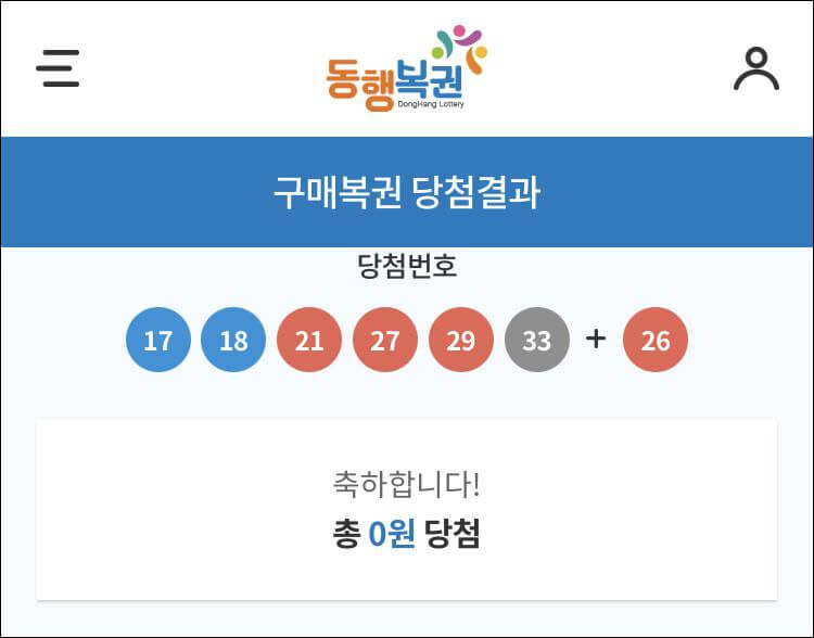그동안 로또를 해 보면서 최고로 높게 나온 게 4등입니다. 인터넷으로 로또를 사 본 건 이번이 처음인데, '축하합니다!'라고 해놓고 총 0원 당첨이라고 나와서 다 떨어진 줄 알았습니다. 그래도 5등 당첨되었다는 사실에 만족합니다.
