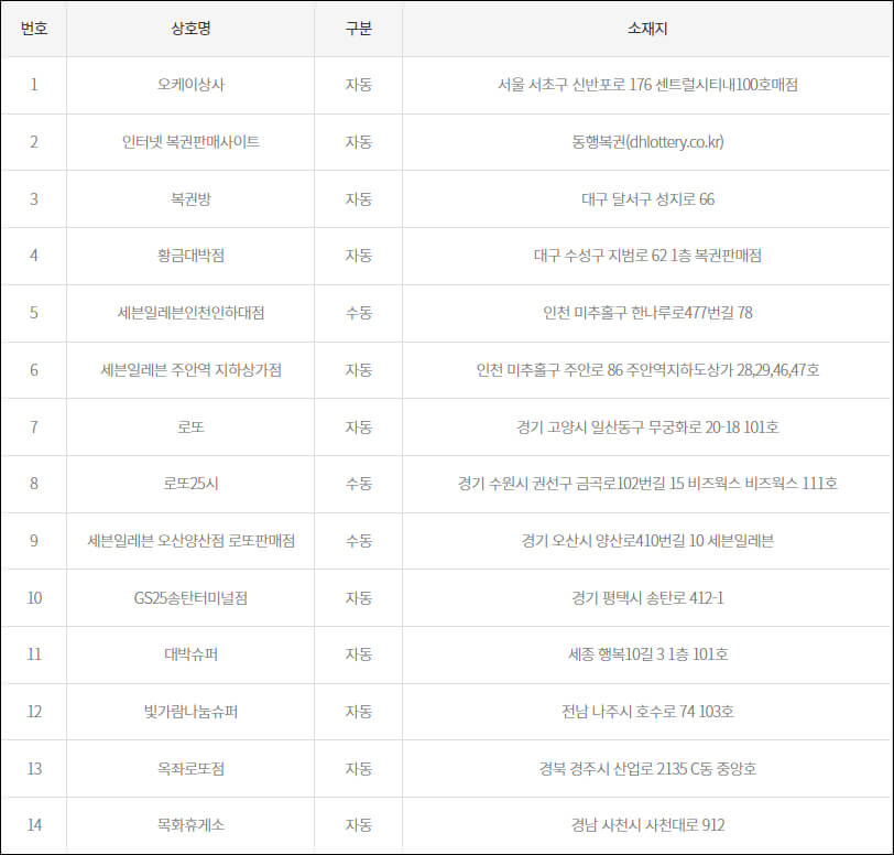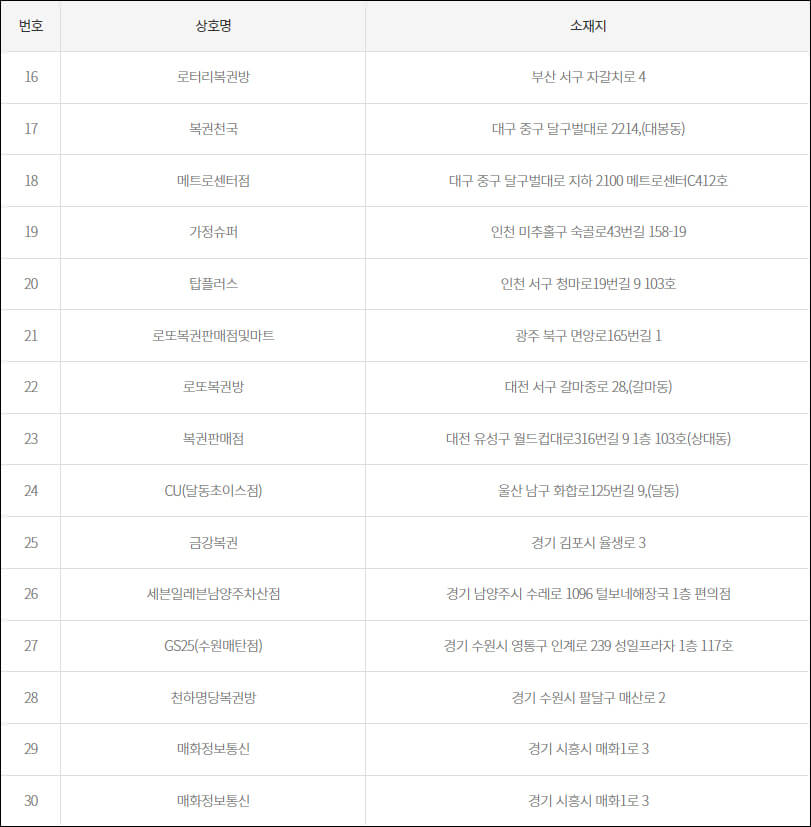 23. 복권판매점: 대전 유성구 월드컵대로316번길 9 1층 103호(상대동)