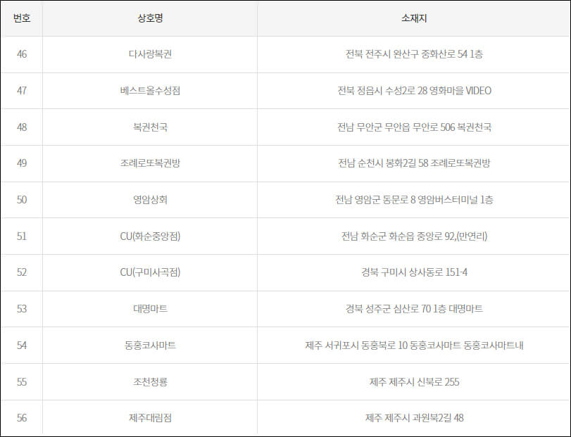 48. 복권천국: 전남 무안군 무안읍 무안로 506 복권천국