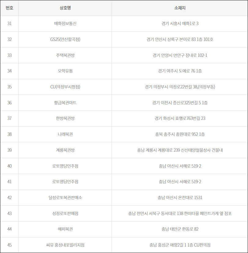 이번에는 2등도 인터넷 구매가 당첨되었습니다. 제가 오프라인으로 구매한 지역과 가까운 곳에서 당첨자가 나왔네요.