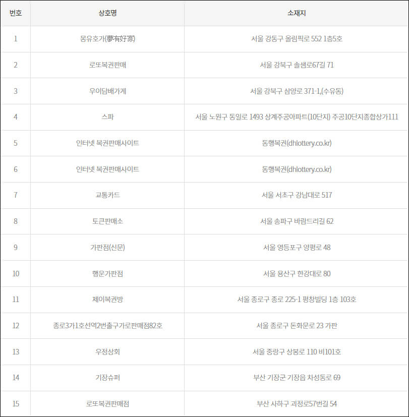이번에는 2등도 인터넷 구매가 당첨되었습니다. 제가 오프라인으로 구매한 지역과 가까운 곳에서 당첨자가 나왔네요.