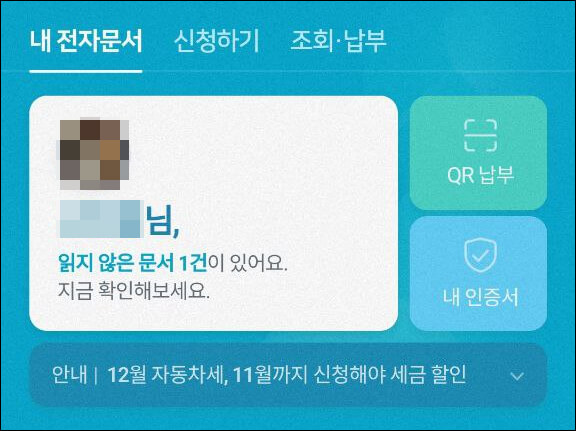 저는 네이버 앱을 국민비서에 연동해 두었습니다. 국민비서에서 알림이 오면 내 전자문서에 오게 되어 있습니다. 내 전자문서에 읽지 않은 문서가 뜹니다.