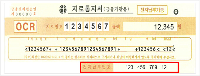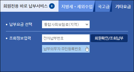 홈페이지 화면에 회원 전용 바로 납부서비스 메뉴가 있습니다. 지로를 이용할 때 필요한 정보는 전자납부번호입니다. 전자납부 번호는 지로용지에 표시되어 있으며 17자리 또는 19자리 숫자로 되어 있습니다.
